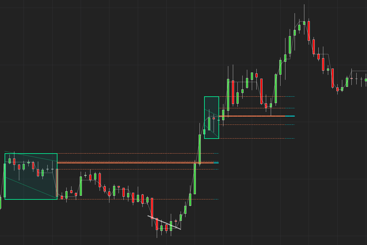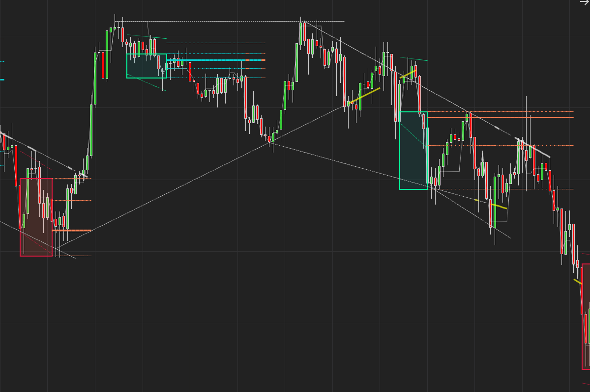 It incorporates Trendlines as these levels also explain the structure of the market. We can clearly see how the market moves in to new areas of consolidation and then breaks of that structure.