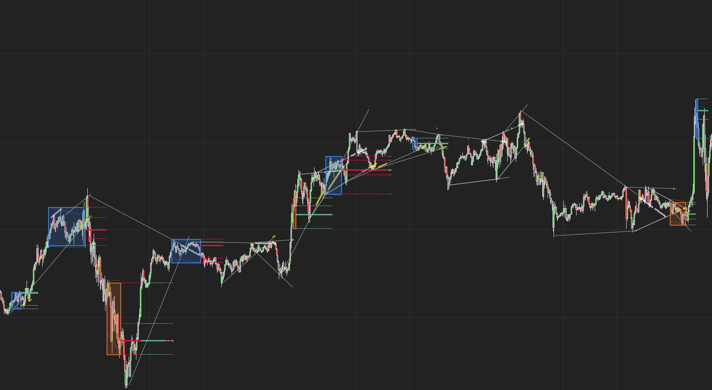 The Market Structure indicator is designed to decode the underlying rhythm of price movement—revealing transitions between accumulation, expansion, distribution, and contraction phases with precision.